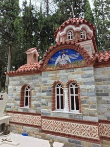 Avea o mare dragoste pentru sfintele mănăstiri, mai ales pentru Mănăstirea Maica Domnului Prusiotissa. De hramul mănăstirii ea era în fruntea femeilor din sat care mergeau să se închine Preasfintei Fecioare. Porneau la drum la miezul nopții și mergeau aproximativ 12 ore până la mănăstire. Ajungeau în ajunul praznicului. Își lua nepoții mici cu ea și nu îi lăsa să mănânce pe drum ceva, ci abia după ce se împărtășeau la mănăstire. Uneori când porneau la drum în ajunul praznicului pentru a fi prezenți la Dumnezeiasca Liturghie din ziua praznicului, nu îi lăsa să bea apă de cu seară chiar dacă aveau să meargă toată noaptea.